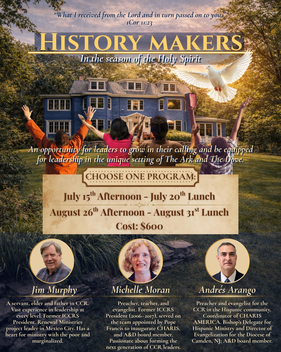 July 15 (afternoon) – 20 (lunch), 2026 or August 26 (afternoon) – 31 (lunch), 2026