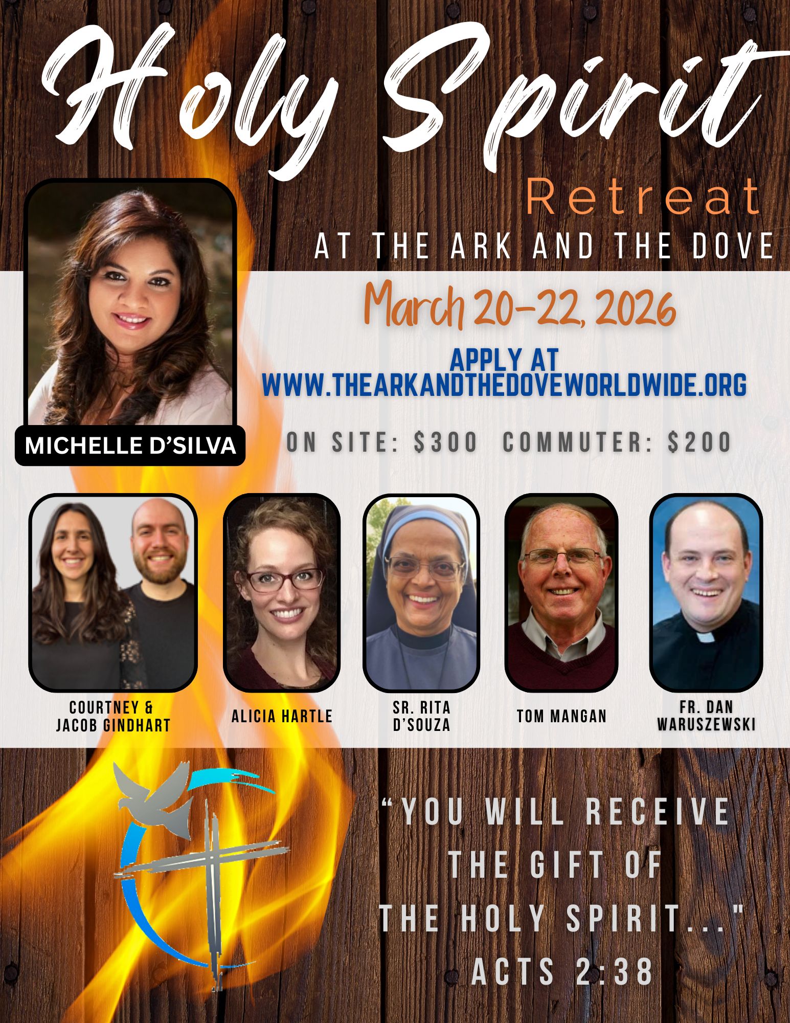 Michelle D’Silva leader in the Renewal, from Doha,Qatar, Sister Rita D’Souza, Alícia Hartle Tom Mangan, and Fr. Dan Waruszewski lead a weekend Life in the Spirit Seminar at the site of the Duquesne Weekend. Pray for an outpouring of the Holy Spirit in the Upper Room Chapel.